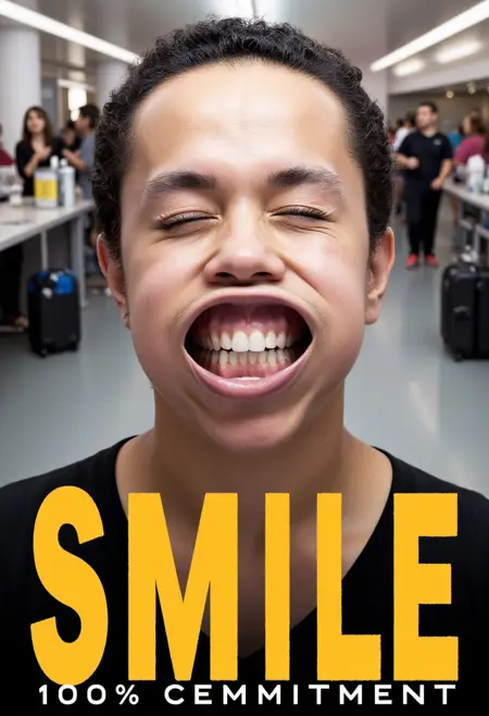为了增添趣味,可以提及牙齿、脸颊、风、飘动的头发以及其他你能想到的细节。