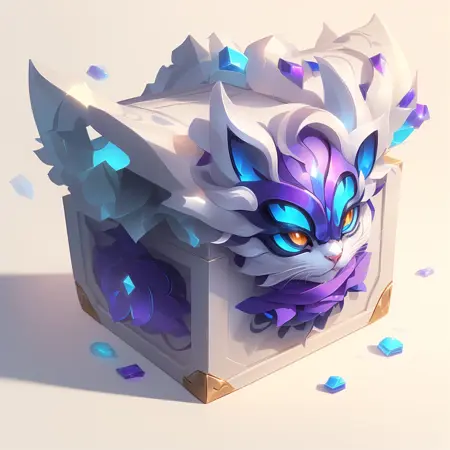示例:AAABX,A futuristic cyberpunk-style high-tech treasure chest on a pure white background, with sharp angular design and glowing neon lines in blue and pink across the surface, detailed metallic textures with mechanical patterns and microchip decorations, dynamic data stream light effects flickering on parts of the chest, small vents and energy ports on the edges, emitting cool-toned sci-fi glow and heat distortionlora:AAABX-000010:0.7,