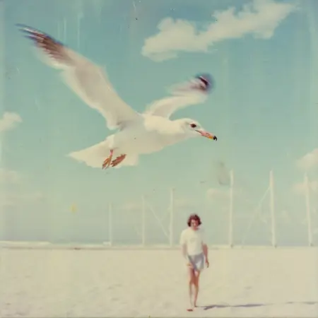 soft focus, blurry, light leaks, damaged polaroid frame, scratched, analog film, overexposed, Faded colors, Grainy texture