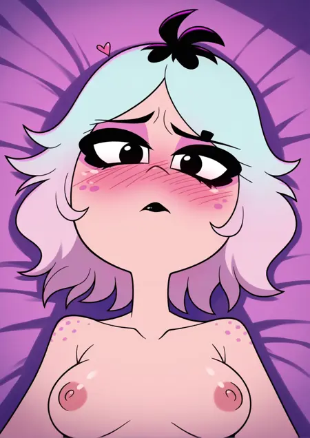 角色外观: 白发,彩色头发,黑眼睛,黑唇,雀斑,粉眼影,矮胖型,娇小