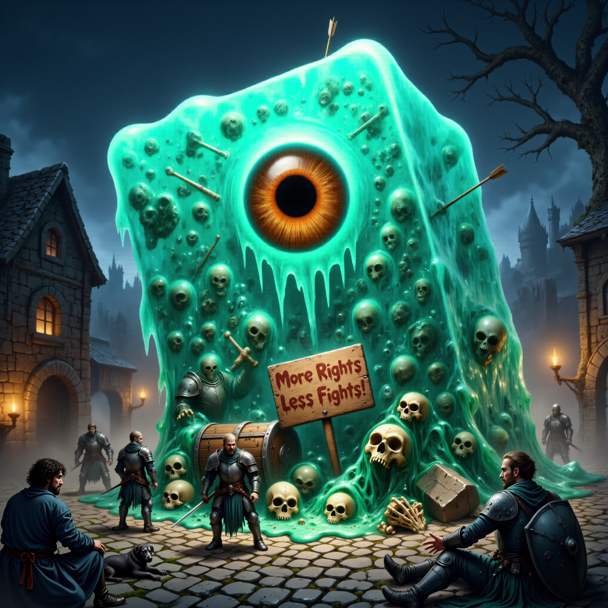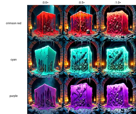 One of the most iconic monsters in the history of roleplaying games is probably the Gelatinous Cube from DnD, and while Flux can make a cube of gel and stick a sword in it, I'd say this Lora should do a better job at making an actual monster. I captioned the training data with natural descriptions of the images as the first attempt with standard settings and the comma-separated captions from the autotagger resulted in an utter failure (thanks for letting me waste 2.5k buzz on that steaming pile of garbage, Civitai, there should be a warning about using standard settings for training a Flux-Lora somewhere! :p), so "gelatinous cube" is kinda the trigger (duh) as that was used in every caption.