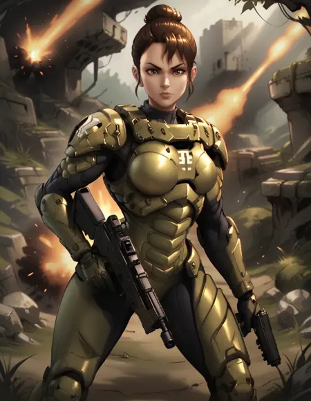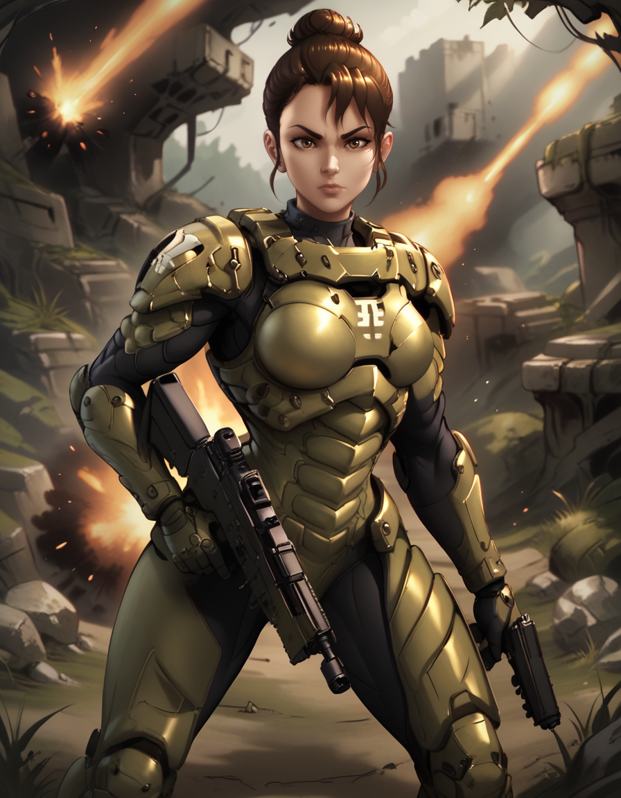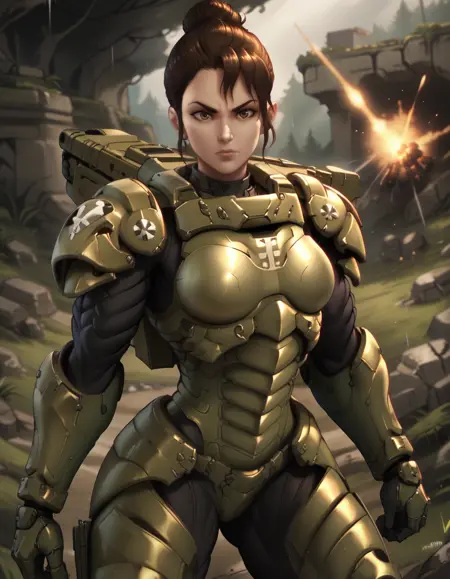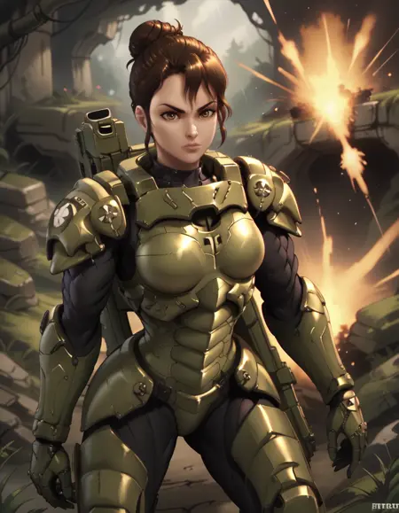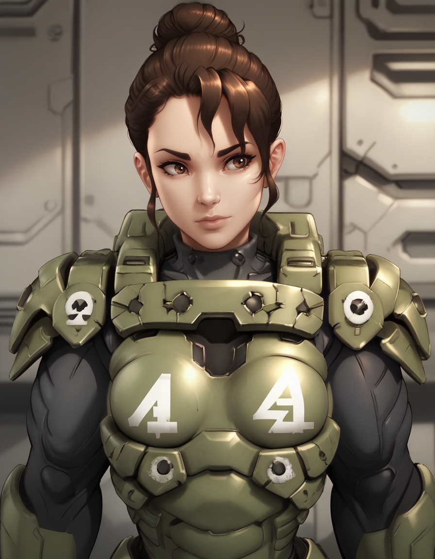 嘿,这是该系列的另一个角色,希望你喜欢!只要提示“头盔”、“遮住脸部”,然后移除所有与她的面部和表情相关的内容,比如眼睛、嘴巴、发色等,就可以生成头盔。