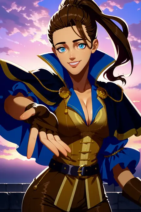 파이어 엠블렘: 스리 하우스의 주디스 폰 다프넬. Pony Diffusion V6 XL로 학습됨. 0.8-1.0 강도에서 테스트됨.