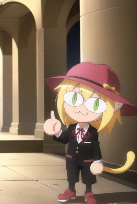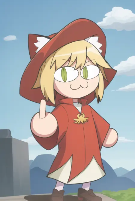 大部分时间,它会生成默认的Neco-Arc姿势角色,但如果你想严格固定为该姿势,我已经用“necopose”标签标记了数据集中必要的图像,直接使用即可。