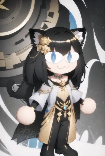 1girl, full body, :3, cat ears, chibi, cat girl, cat tail, solo, slit pupils