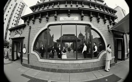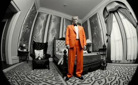 为了最大程度地发挥该模型的效果(据我有限的测试经验),请在提示词中加入:“monochrome”、“8mm nikkor fisheye lens”,你就能得到出色的结果了。我也使用了“75mm film stock”进行训练,但我更偏好鱼眼效果。