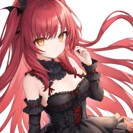 lora:kedamamilk-000004:1, 1girl, 红发, 黄色眼睛, 中等胸部, 哥特风格, 花边, 简单背景