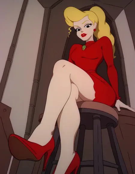 xveronicax, blonde hair, long hair, ponytail, black eyes, makeup, lipstick