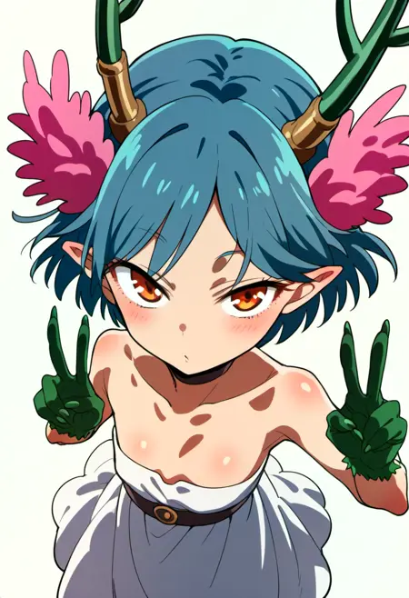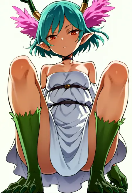 推荐提示(正确着装):白色连衣裙、无肩带、绿色爪子,