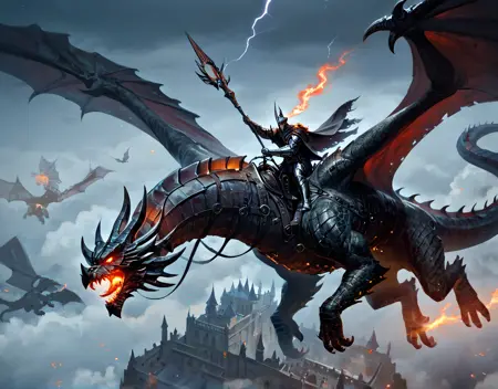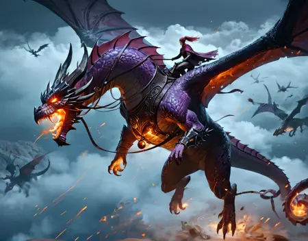 This is a pretty straightforward Dragonrider lora. As the name suggests, it will give you people riding (consensual) dragons of various types, typically mid-flight.
