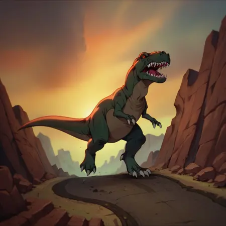 Sharptoothlbt, feral, male, Tyrannosaurus, theropod, dinosaur, scalie, green skin, red eyes, red sclera