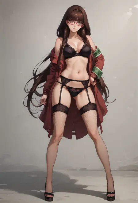 I advise you to start like this: score_9, score_8_up, score_7_up, lora:Hiei:0.8,hiei_aoki,glasses,long hair, solo,brown hair, brown eyes ,medium breasts,...