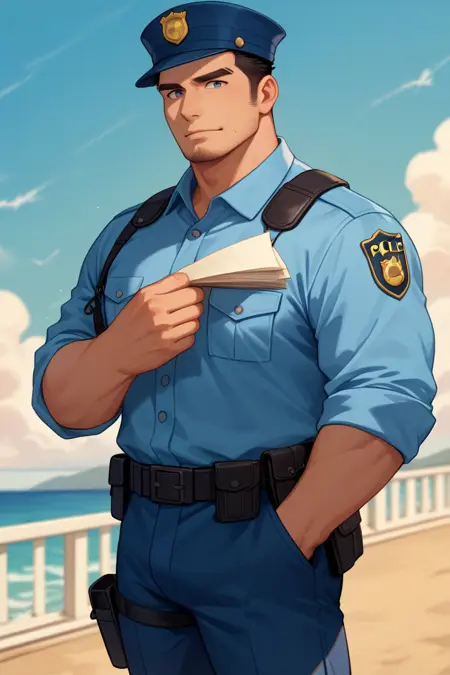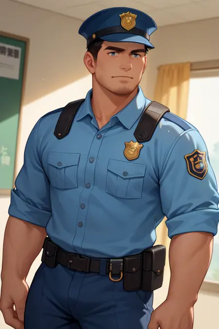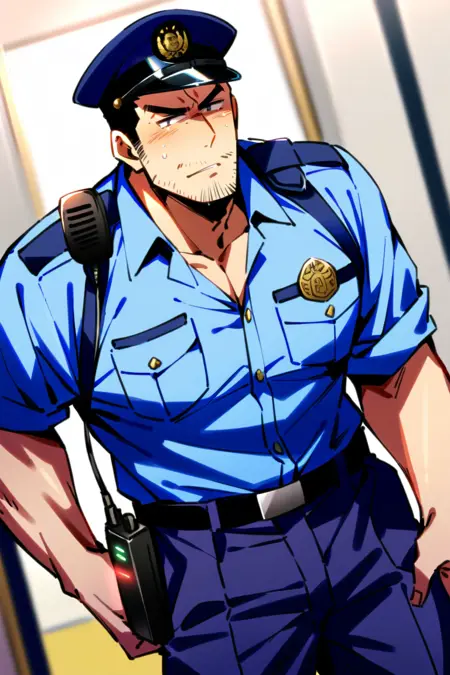 HannekenJpPcSm01, light-blue collared shirt, rank slides, rank insignia, dark blue pants