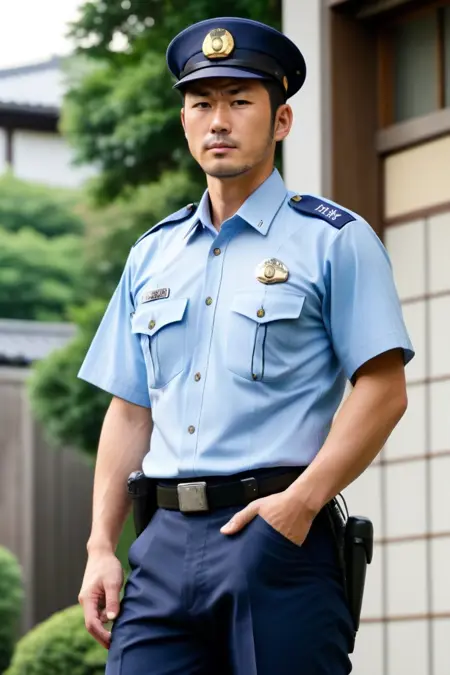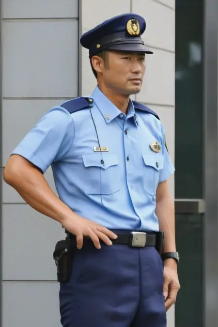 HannekenJpPcSm01, light-blue collared shirt, rank slides, rank insignia, Taijinbogofuku vest, stab vest, dark blue pants