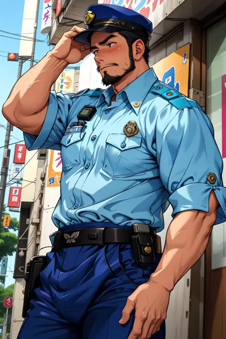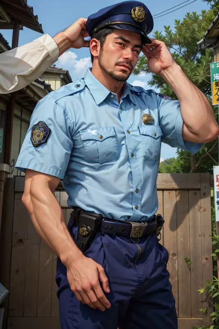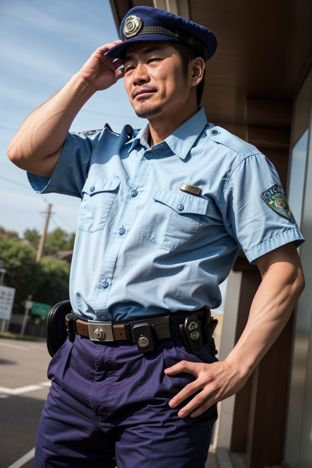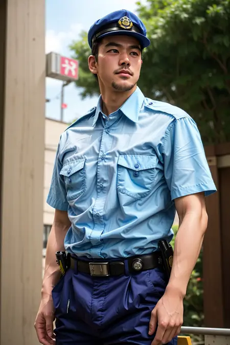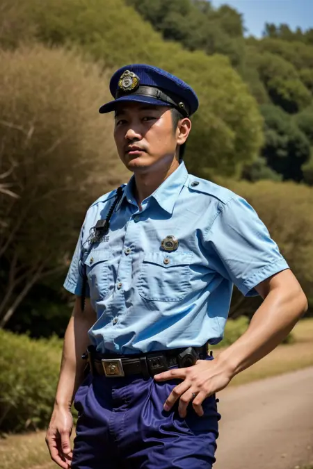 HannekenJpPcSm01, 浅蓝色翻领衬衫,警衔滑片,警衔标志,泰仁保服背心,防刺背心,深蓝色裤子