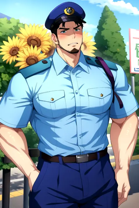 HannekenJpPcSm01, 浅蓝色翻领衬衫,警衔滑片,警衔标志,深蓝色裤子
