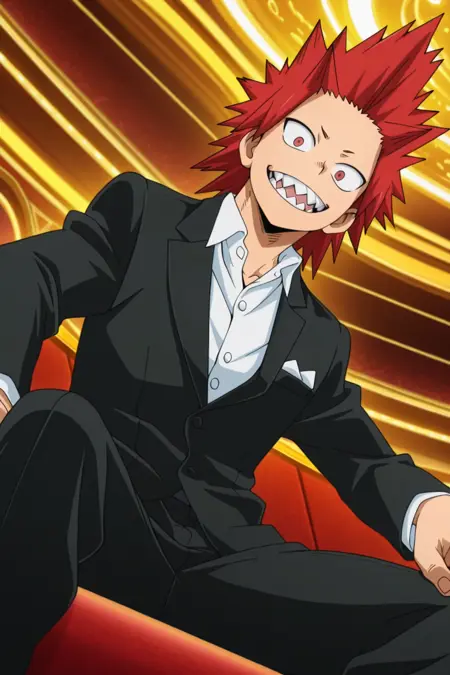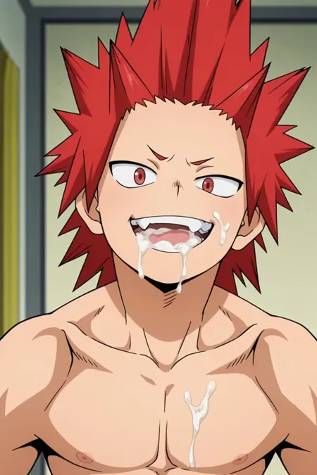 1boy, solo, Kiri, official art, official style, red hair, spiked hair, red eyes, sharp teeth, ...