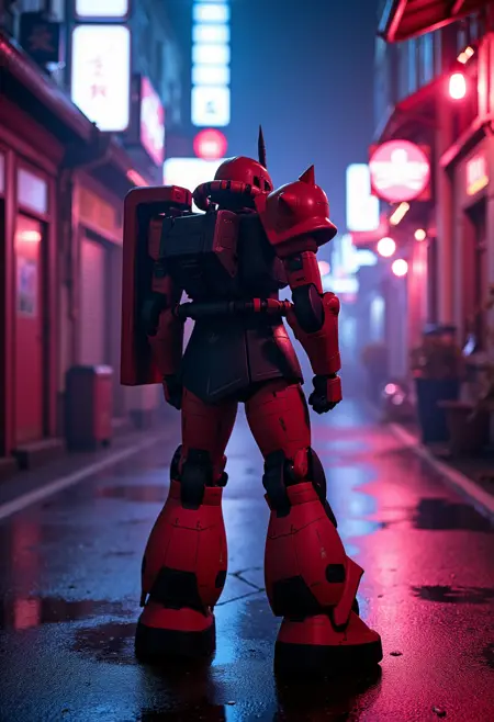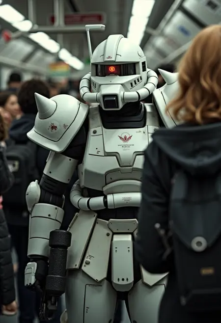 Flux는 매우 뛰어난 디테일과 캐릭터 형태를 가지고 있지만, 가벼운 트레이닝을 통해 제 RX-78 건담 모델처럼 자쿠의 형태를 향상시키고, 자쿠에도 여자 옷을 그릴 수 있는 기능을 제공합니다.
