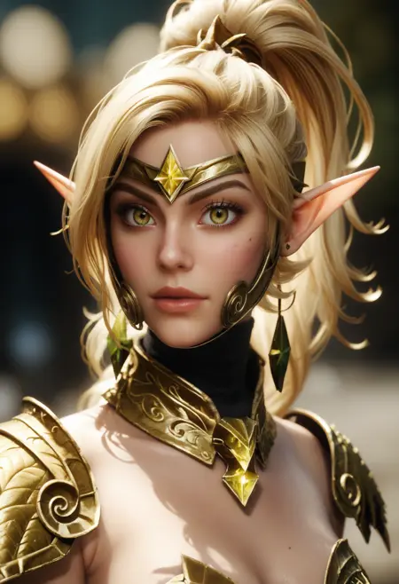 주요: d4rk3lv3n14, bikini armor:belly chain:thong, gorget, pauldrons, gauntlets, cuisses, high heel boots, helmet, earrings,