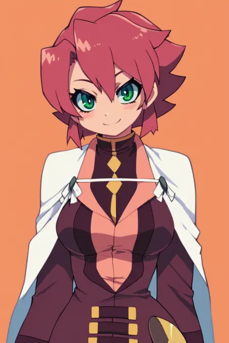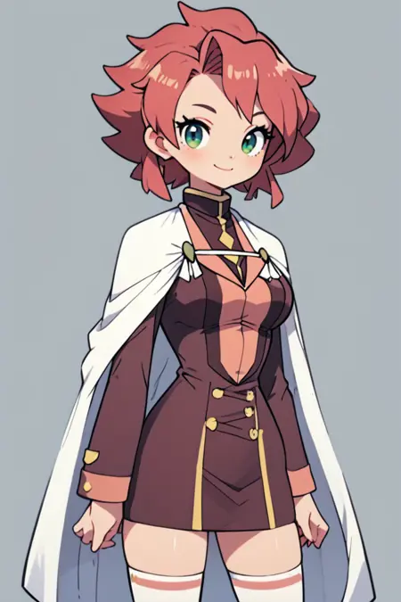 zzChiaia, 1소녀, 혼자, 빨간 머리, 단발, 녹색 눈, 흰색 망토, 유니폼,