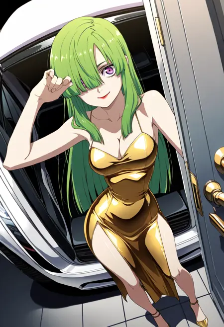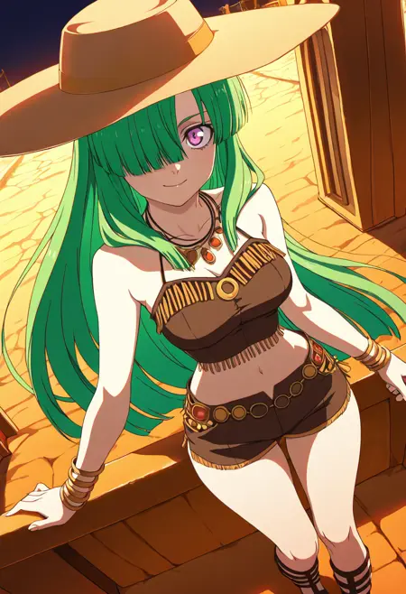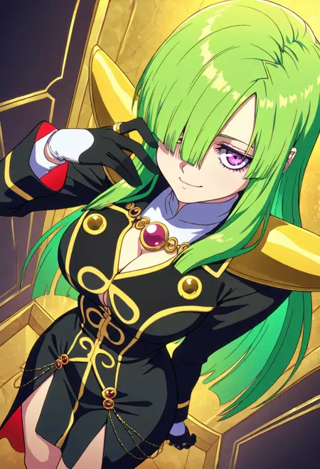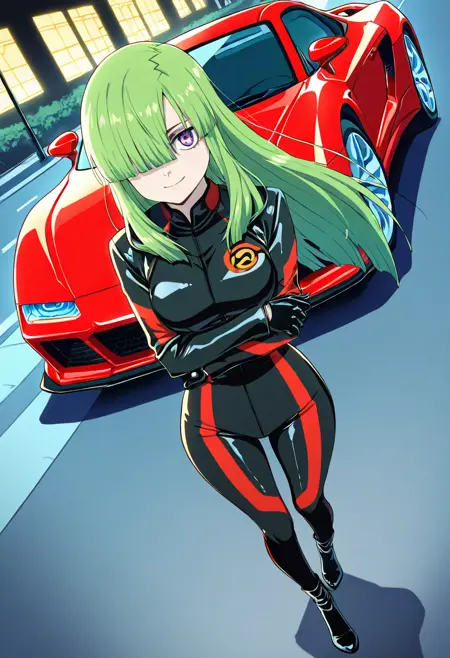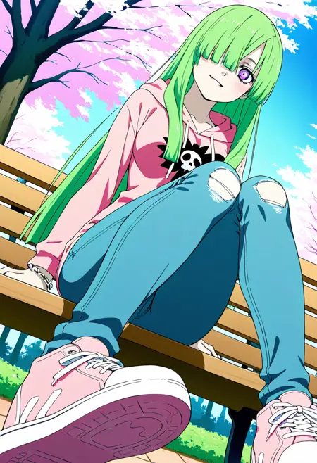 zzDoll,紫色眼睛,绿色头发,长发,头发遮住一只眼睛,