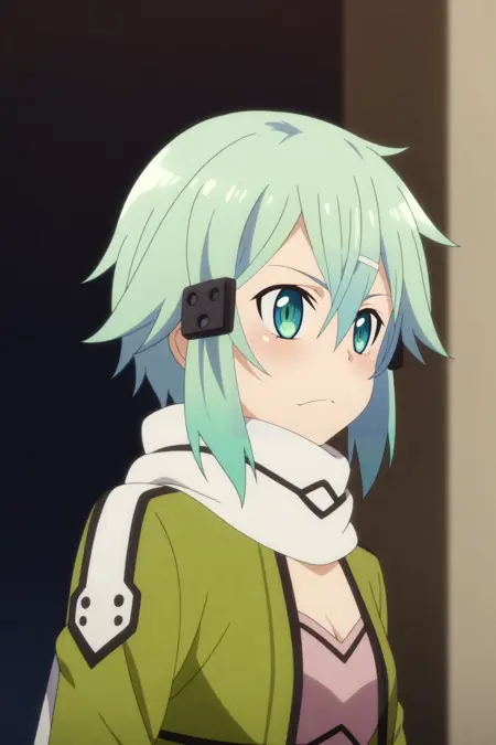 트리거: shino asada, 1girl, solo, 머리 장식, 머리핀, 스카프, 단발, 손가락 없는 장갑, 장갑, 흰 스카프