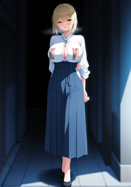 プロンプト: お札着用、お札、膣に貼られたお札、胸に貼られたお札、乳首に貼られたお札
