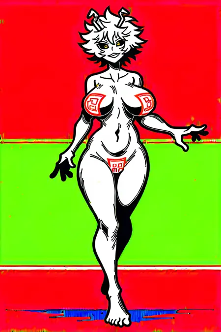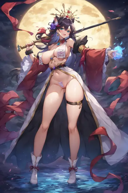 프롬프트: 오후다 착용, 오후다, 성기 위 오후다, 가슴 위 오후다, 젖꼭지 위 오후다,