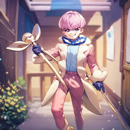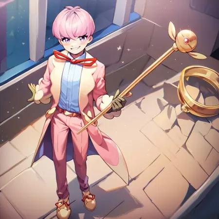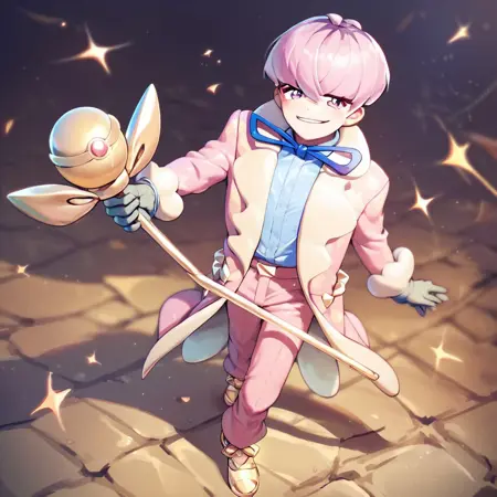 It's Ortega from pokemon SV with both of his outfits, just tip red ribbon or blue ribbon to change it