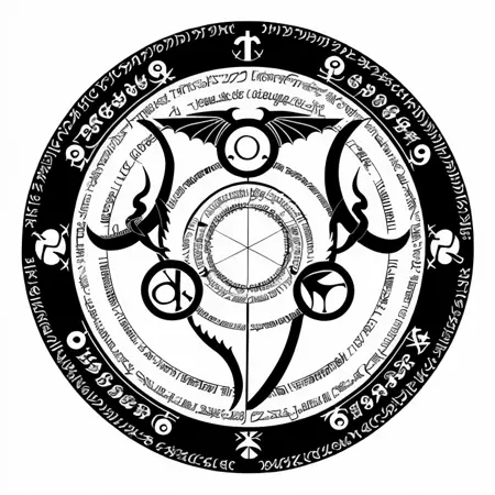 • nvjobmagiccircle 마법 드래곤 소환 원반, 글자, 기호, 흰색 배경, 흑백