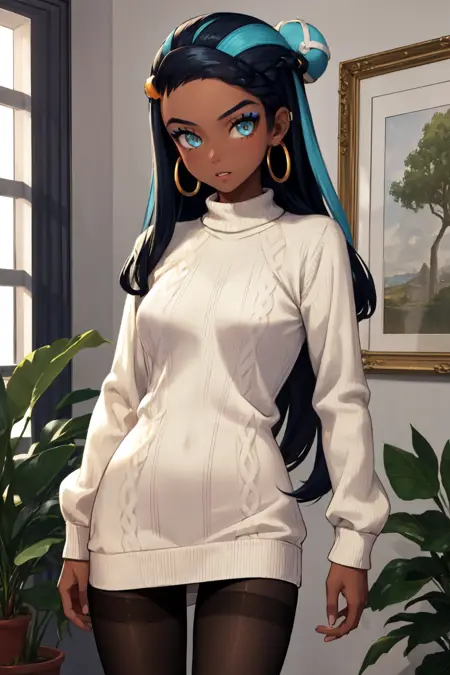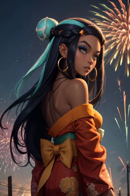 触发词 + 外貌特征: nessa, 深色皮肤, 深肤色女性, 单个发髻
