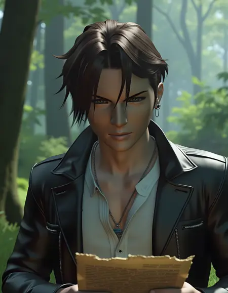 Create a scene reminiscent of the iconic cutscenes from Final Fantasy VIII. The scene features intricately designed characters and environments, capturing the essence of the game’s memorable aesthetics.