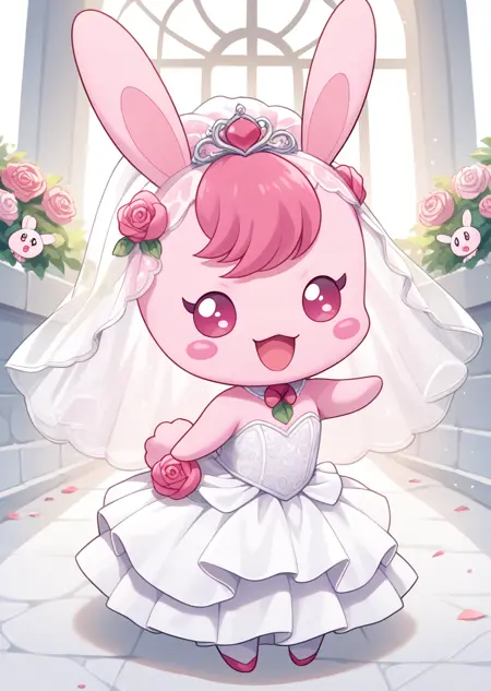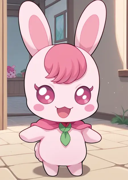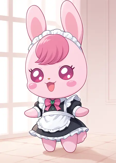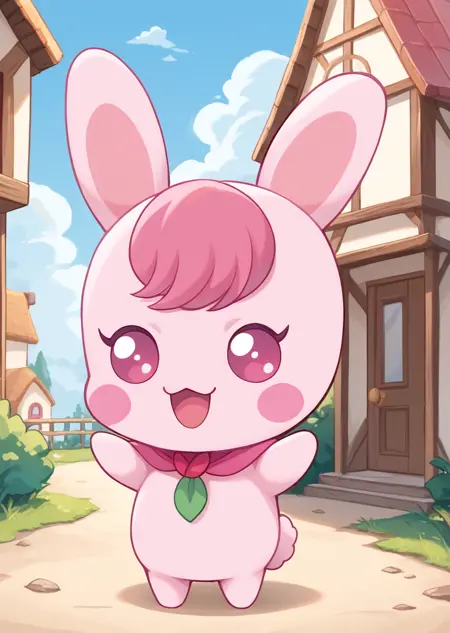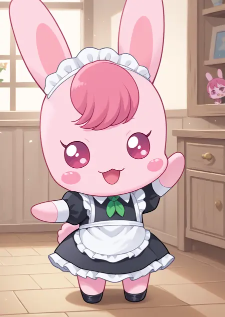 프롬프트: rabirin, 퓨리, 동물 귀, 분홍색 눈, 점 눈, 공막 없음, 커피렛, 가슴 장식, 분홍색 털, :3