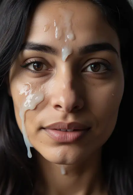 Example prompt: "A woman's face. Whitish translucent cum is splattered across her face and chest."