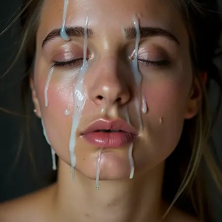 示例提示词:"一张女性的脸。泛白的半透明精液溅洒在她的脸上和胸部。"