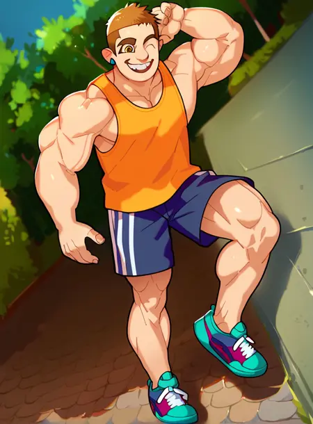 트리거 단어는 "r-d"이며, 근육질이고 남성적인 캐릭터를 생성할 때는 보통 이 단어 없이도 잘 작동합니다. 트리거 단어를 사용하고 사용하지 않고 실험해 보세요.
