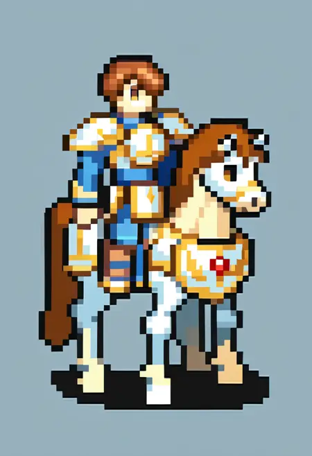 《火焰之纹章》GBA像素风格。基于Pony Diffusion V6 XL训练。