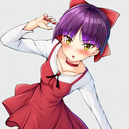 neko-musume, 1girl, solo, purple hair, yellow eyes,