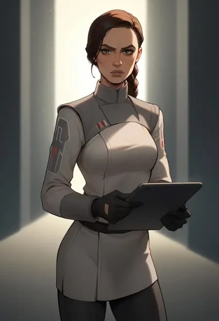 Star Wars: The Bad Batchのシーズン2と3から撮影されたエメリ・カールの77枚の画像、3Dモデル、ファンアート、および似た外見の人物で学習されたLoRA。