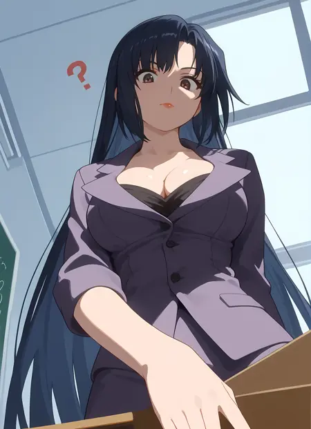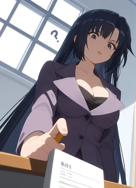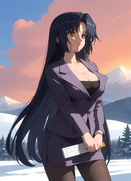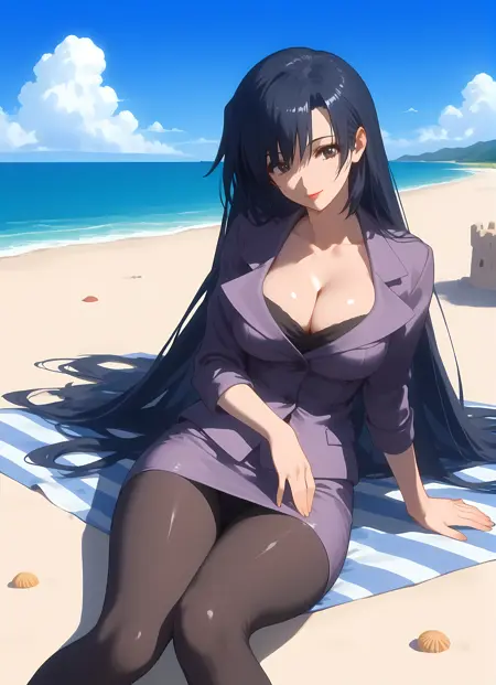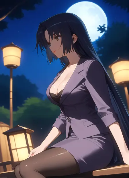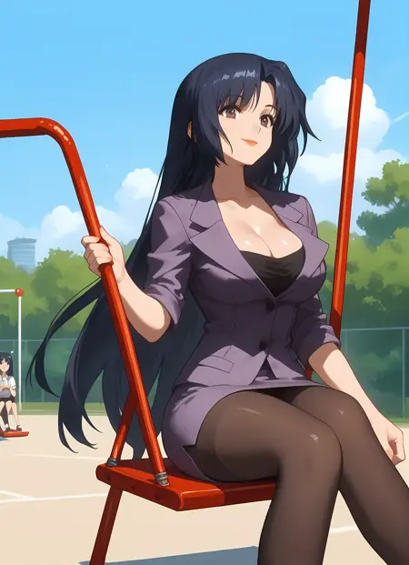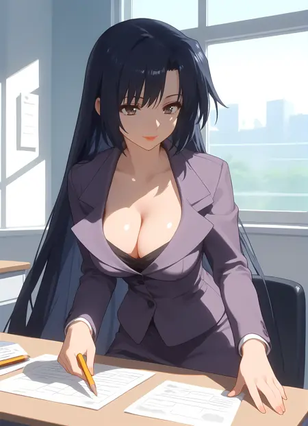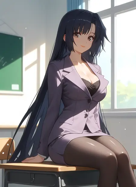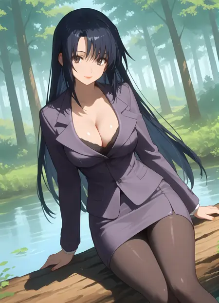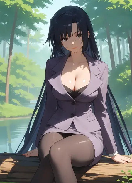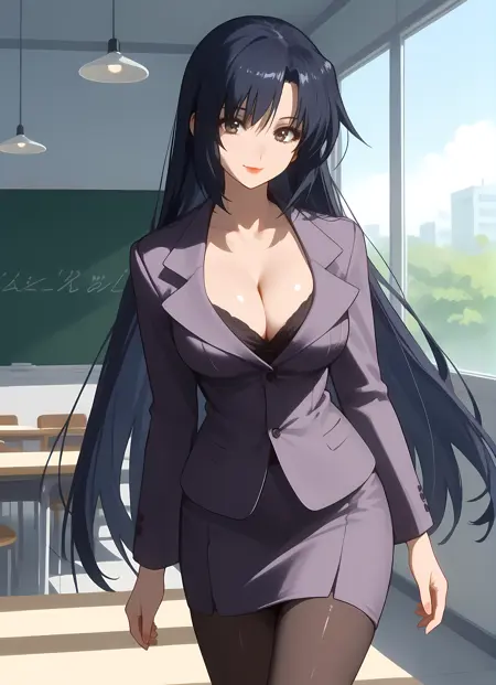 옷차림 → pantyhose, skirt, pencil_skirt, skirt_suit, cleavage, suit, formal, teacher,