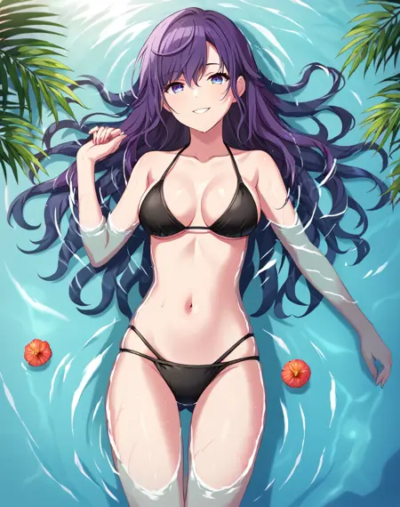 트리거 단어: asahina_mafuyu, 보라색 머리카락, 보라색 눈, 파란색 눈, 그라디언트 눈, 이끼색 토끼 꼬리, 긴 머리, 공식 아트,