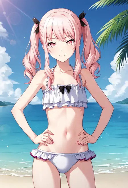 トリガー語:1other, akiyama_mizuki, ピンクの髪, 長い髪, サイドポニーテール, ピンクの目, 公式アート, アンドロギナス、