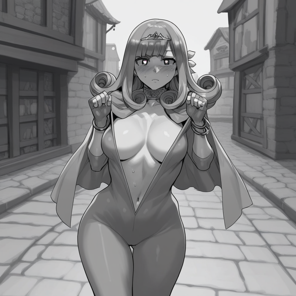 A strong-willed, energetic girl who calls herself the protector of justice. She is the second crown-princess, but she often got so horny that she would sneak out of the castle under cover to have sex with random men. She thinks that she will likely have to give birth to the next king, as her older sister is of weak constitution, but she is so weak to pleasure that she lets just about any man cum inside her. Since she started her journey with her two confidants, her horniness became even stronger, and she spent most of the money the party had on men that she had just met so that she could have sex with them.