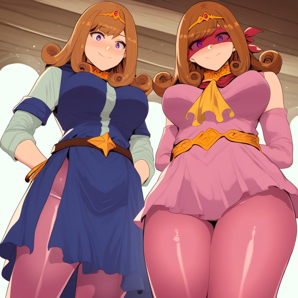 2. ((red transparent silk mask, gold princess tiara with red stone, short red hero cloak, sexy erotic obscene fingerless deeply cutout pink full bodysuit, gold bracelets, gold choker collar, ))