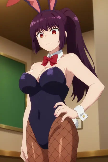 触发词:三波彩夏,1girl,单人,胸部,裙子,长发,白色短袜,校服,大胸部