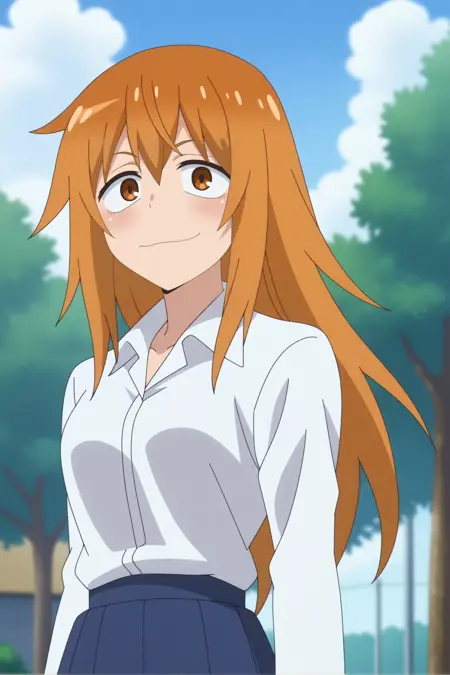 トリガー:maki gamou,1girl,solo,long hair,fang,skirt,bag,school uniform