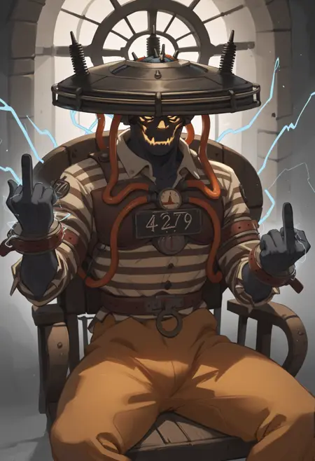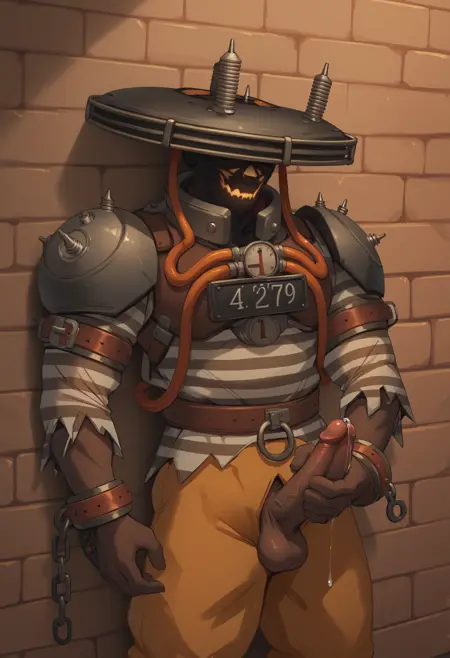 衣装タグ: 収容服、番号プリント、手錠、ケーブル、肩アーマー、鎖、ズボン