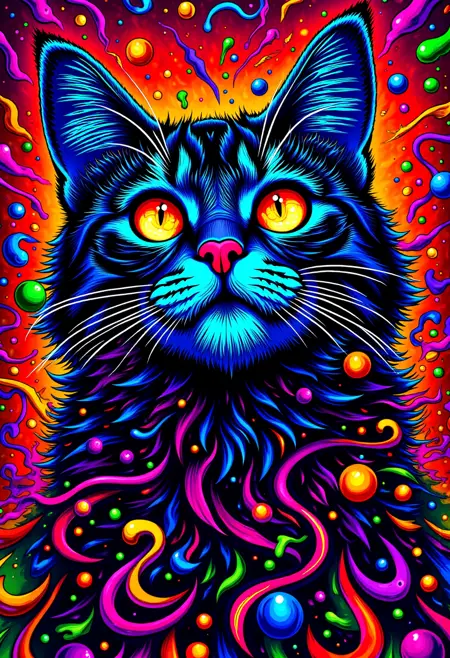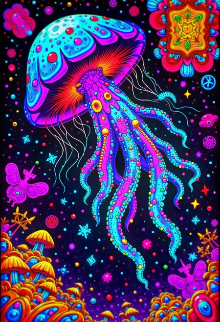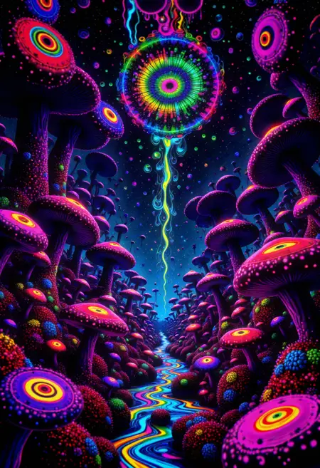 高解像度の精密さ:Fluxの強力なアーキテクチャを活用し、フラクタルパターンから鮮やかに輝く色まで、あらゆるサイケデリックなディテールを捉えた繊細で高品質なビジュアルを生成します。