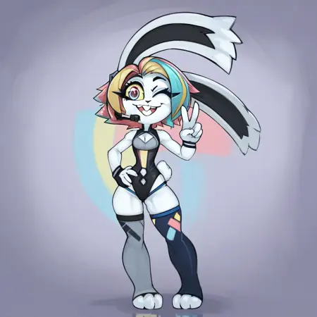 Pix: pixPiczel, rabbit, white fur, rainbow hair, yellow sclera, blue eyes