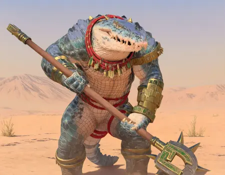 Kroxigor, monster, helmet, holding weapon, club_\(weapon\)